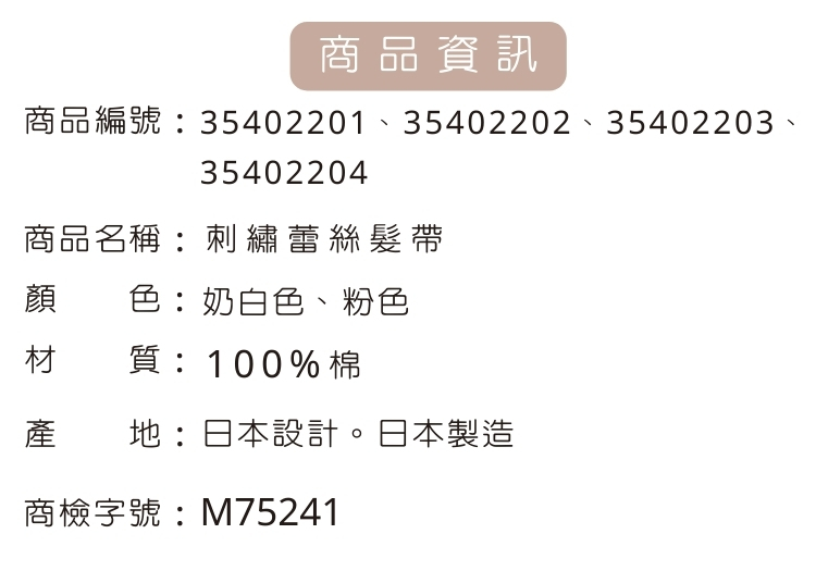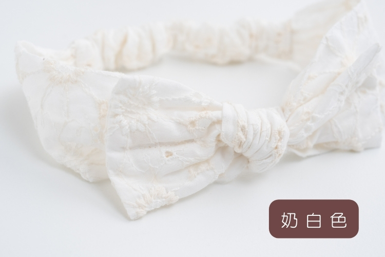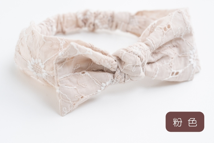 優雅的刺繡蕾絲搭配柔軟布料,溫柔的佩戴在寶寶頭部,不勒不緊、不刺不癢。