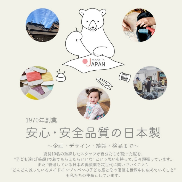 同時,我們也希望把逐漸沒落的日本縫製產業,傳承給下一個世代,並將越來越稀少的 Made in Japan 嬰幼兒童裝的價值,分享給世界各地的家庭。