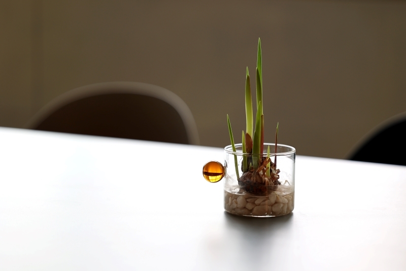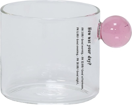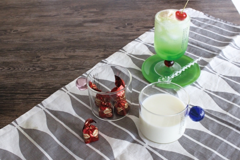 √ 附有彩色玻璃珠的玻璃杯,讓人想起彈珠汽水瓶中的玻璃彈珠