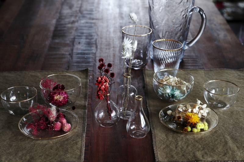 √ 花器整體清澈透明,搭配金色瓶口,營造出優雅的氣息