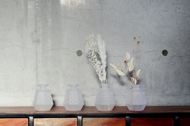 √ 磨砂處理過的花器,觸感如方糖的橫切面