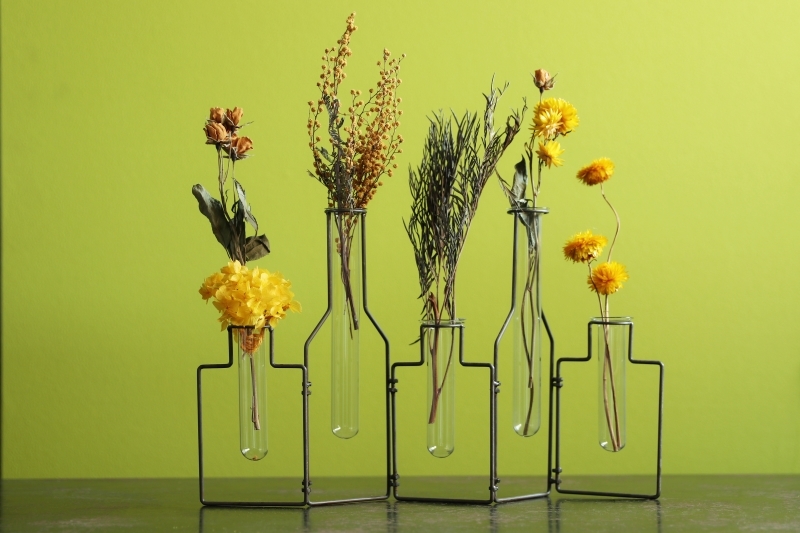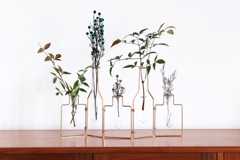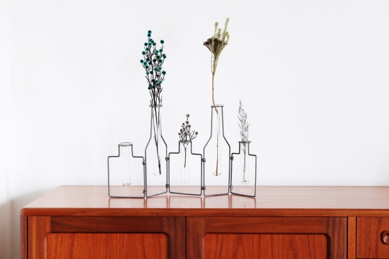 乾淨俐落的線條,搭上玻璃製的小花器,讓這款花器沒有一般花瓶的沉重感,像藝術品一樣